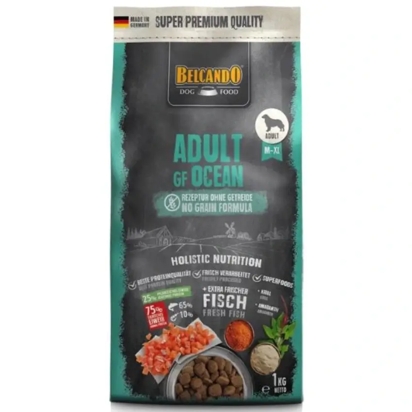 בלקנדו אושן עשיר באומגה 3, חומצות אמינו, מינרלים ויסודות קורט, ונחשב לבחירה מצוינת לכלבים עם רגישות תזונתית.