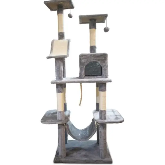 כולל מגלשת גירוד, עמודים לגירוד, מאורה מרופדת וכדורים תלויים לשעשוע