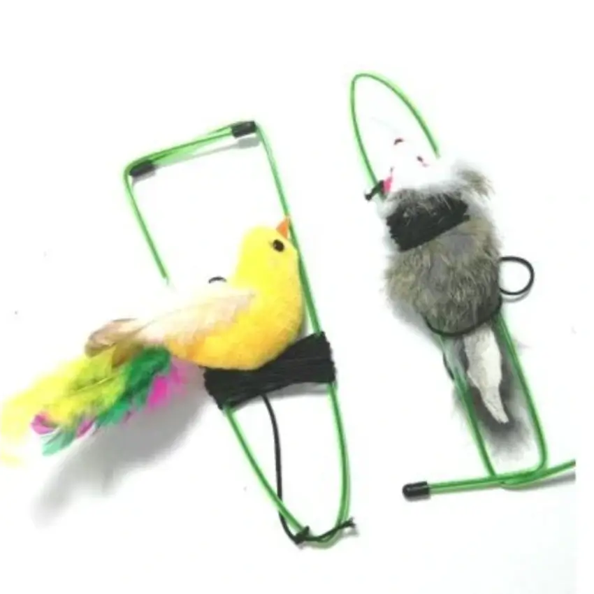 בקצהו תלויה ציפור צבעונית שמגיבה לכל תנועה קלה של החתול – קופצת, מתנדנדת ומעודדת ציד ומשחק.