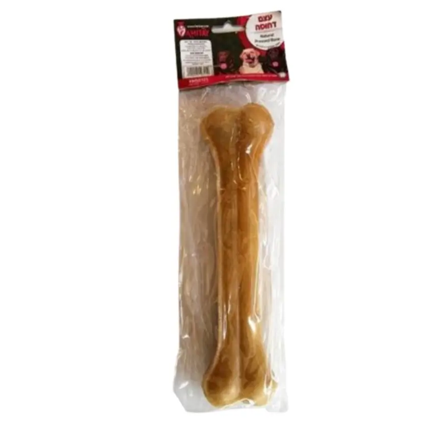 עצם לכלבים העשויה מעור דחוס טבעי, מספקת חוויית לעיסה ארוכה ומסייעת לשמירה על היגיינת הפה.