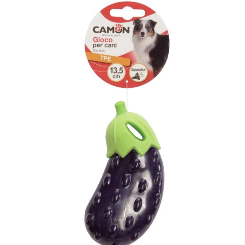 צעצוע חציל מצפצף לכלב מבית CAMON הוא צעצוע משעשע שמעודד פעילות גופנית, משחק אינטראקטיבי ותגובה לצלילים.